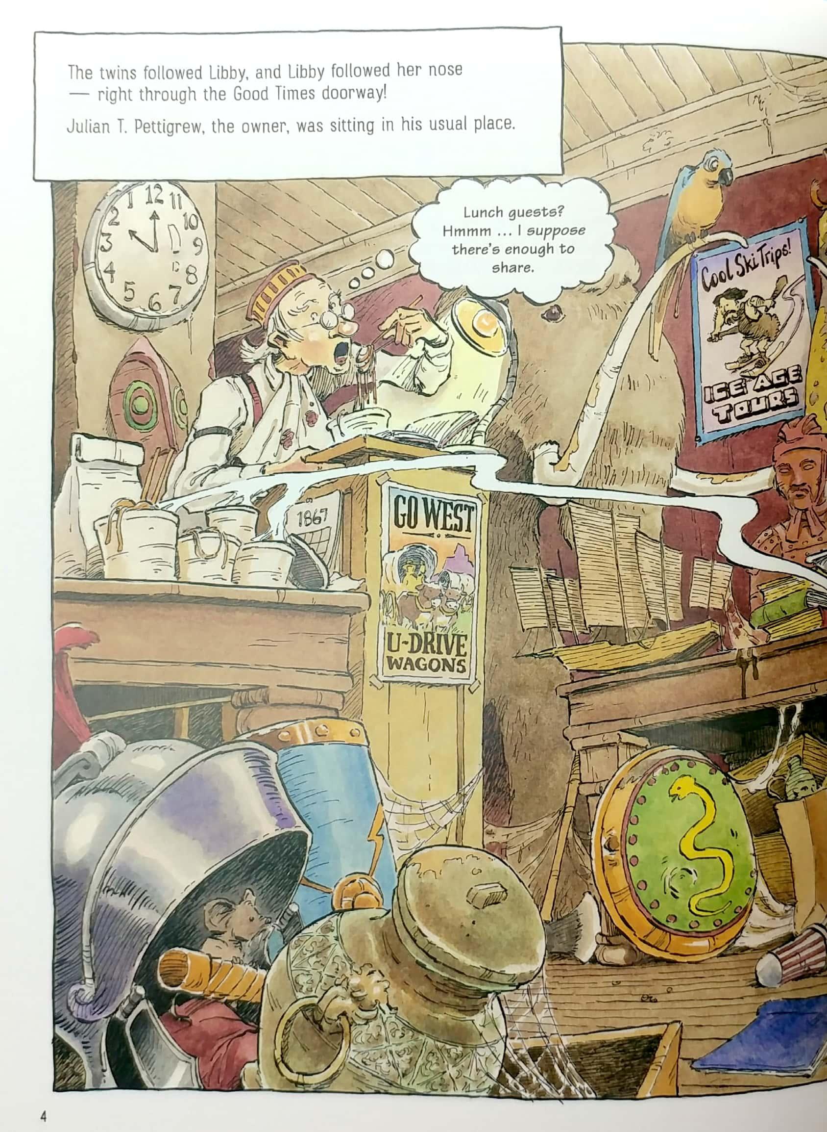 It's the tantalizing smell of Chinese food that's enticed the Binkerton children back into the creepy Good Times Travel Agency. Sure, the fried noodles are delicious, but then the shop owner pulls another one of his mysterious guidebooks off his shelf and before they can stop him, he's sent the children hurtling back in time once again. This time they land in first-century China, where little Libby quickly manages to slip away from Josh and Emma in an official carriage headed to the capital city. But while she's living the ancient China high life with nobility, the twins get mistaken for barbarian spies and soon they're being chased by imperial guards! Will the twins manage to find Libby, and their way back home, before the guards catch up to them?