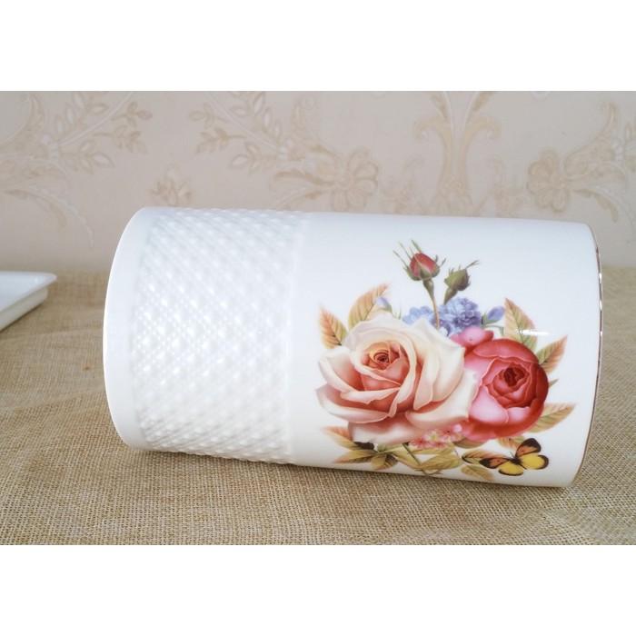 Bộ gồm 3 lọ sứ cao cấp Chất liệu: sứ cao cấp men bóng, bề mặt sần sang trọng Dùng để thìa, dĩa, đũ trên bàn ăn rất sang trọng Giá đỡ inox thuận tiện