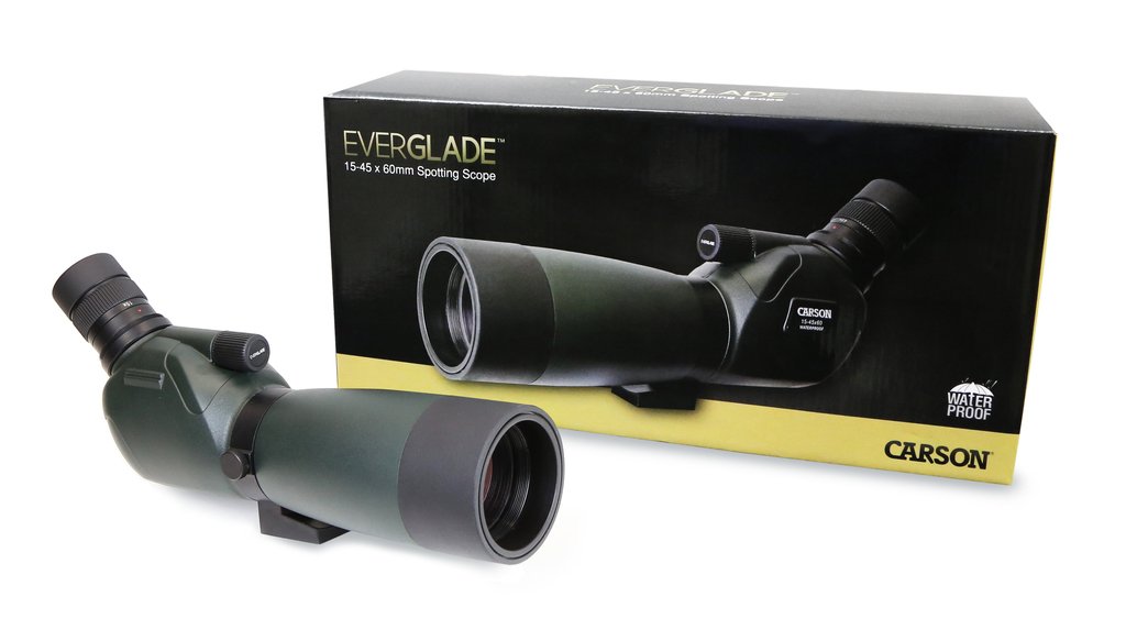 Ống nhòm chống thấm nước Carson SS-560 Everglade HD (Hàng chính hãng Carson Mỹ) với chân máy để bàn, màu xanh lá cây là một ống kính soi 15x-45x với đường kính vật kính 60mm.Có lăng kính lấy nét BK-7...