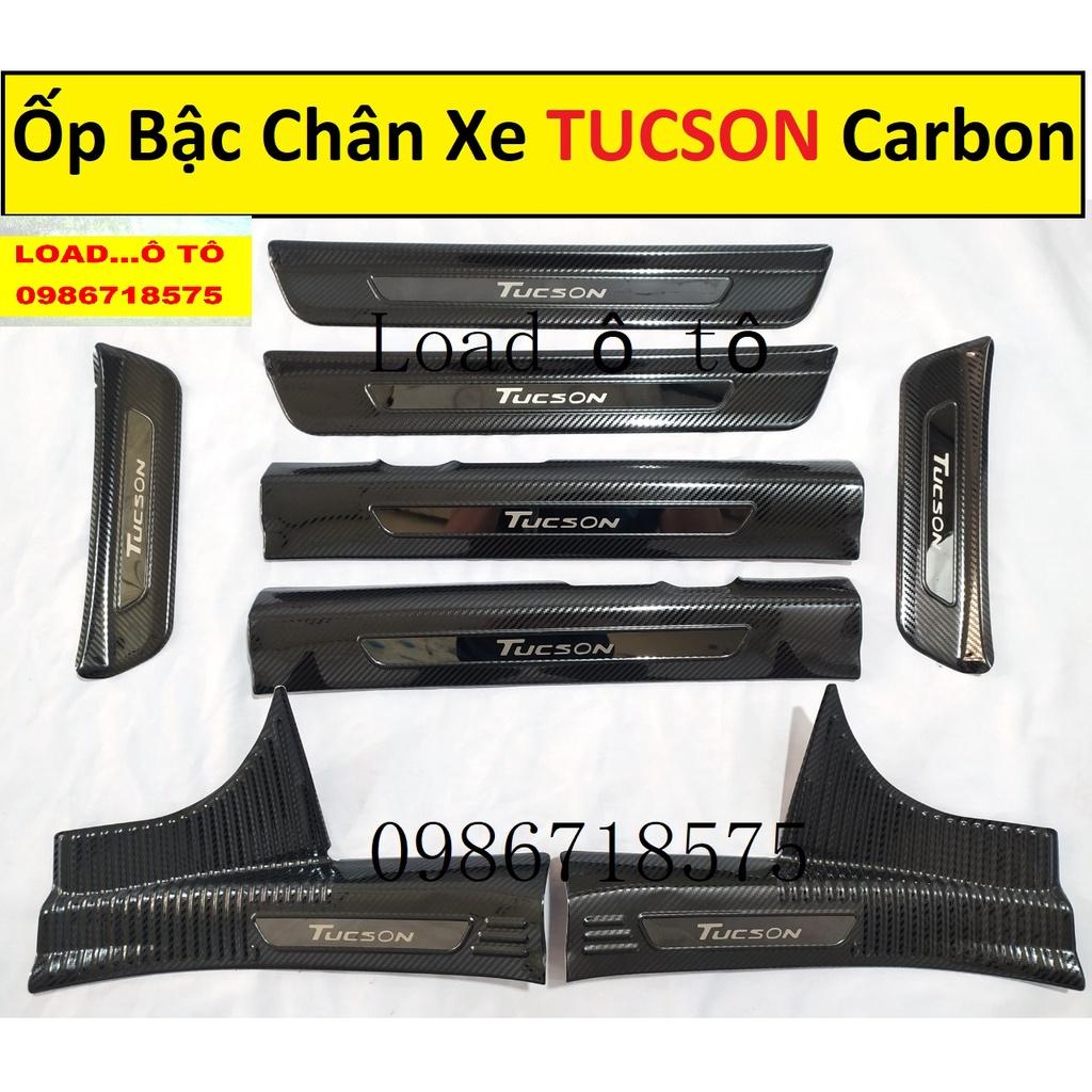 Ốp Bậc Cửa, Nẹp Bước Chân Trong Ngoài Xe Huyndai Tucson 2022-2018 Mẫu Vân Carbon Cao Cấp