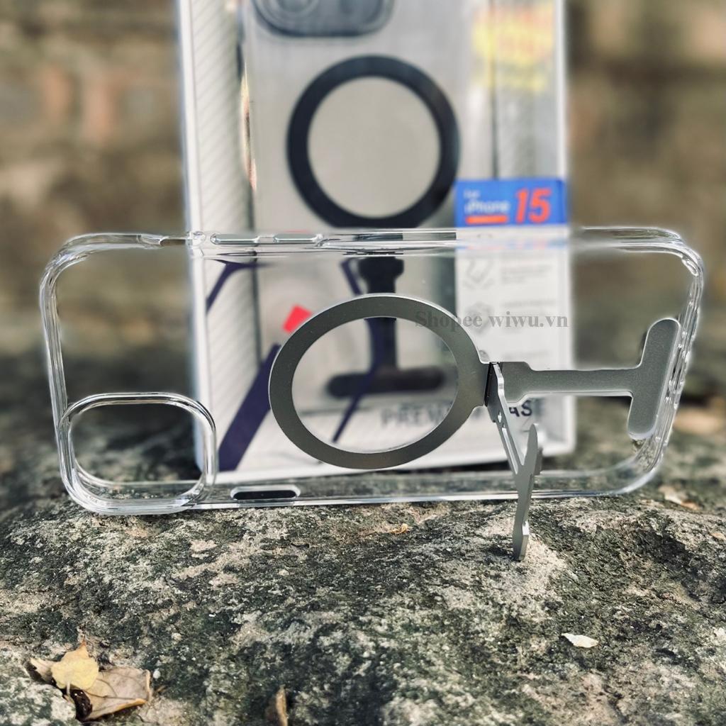 ✨Ốp lưng trong suốt kèm giá đỡ WIWU Aurora Magnetics cho IPhone 15 Pro Max , 14 Pro Max hỗ trợ sạc không dây , chống sốc - hàng nhập khẩu