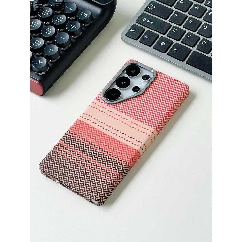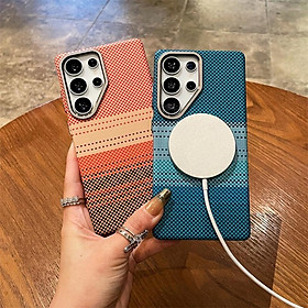 - Ốp lưng nhựa cứng vân carbon , thổ cẩm có vòng hỗ trợ sạc không dây từ tính tiện lợi cho máy Samsung Galaxy S25 Ultra - Mặt lưng nhựa cứng in sần không