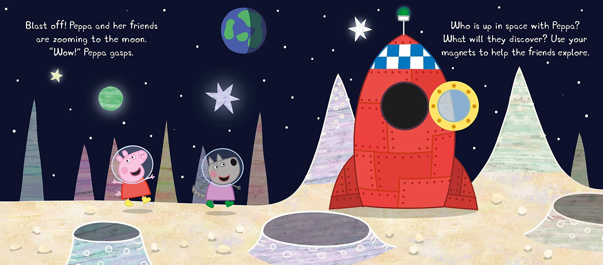 Make up your own stories by placing the magnets of Peppa, her family and friends on these fun magnetic scenes.