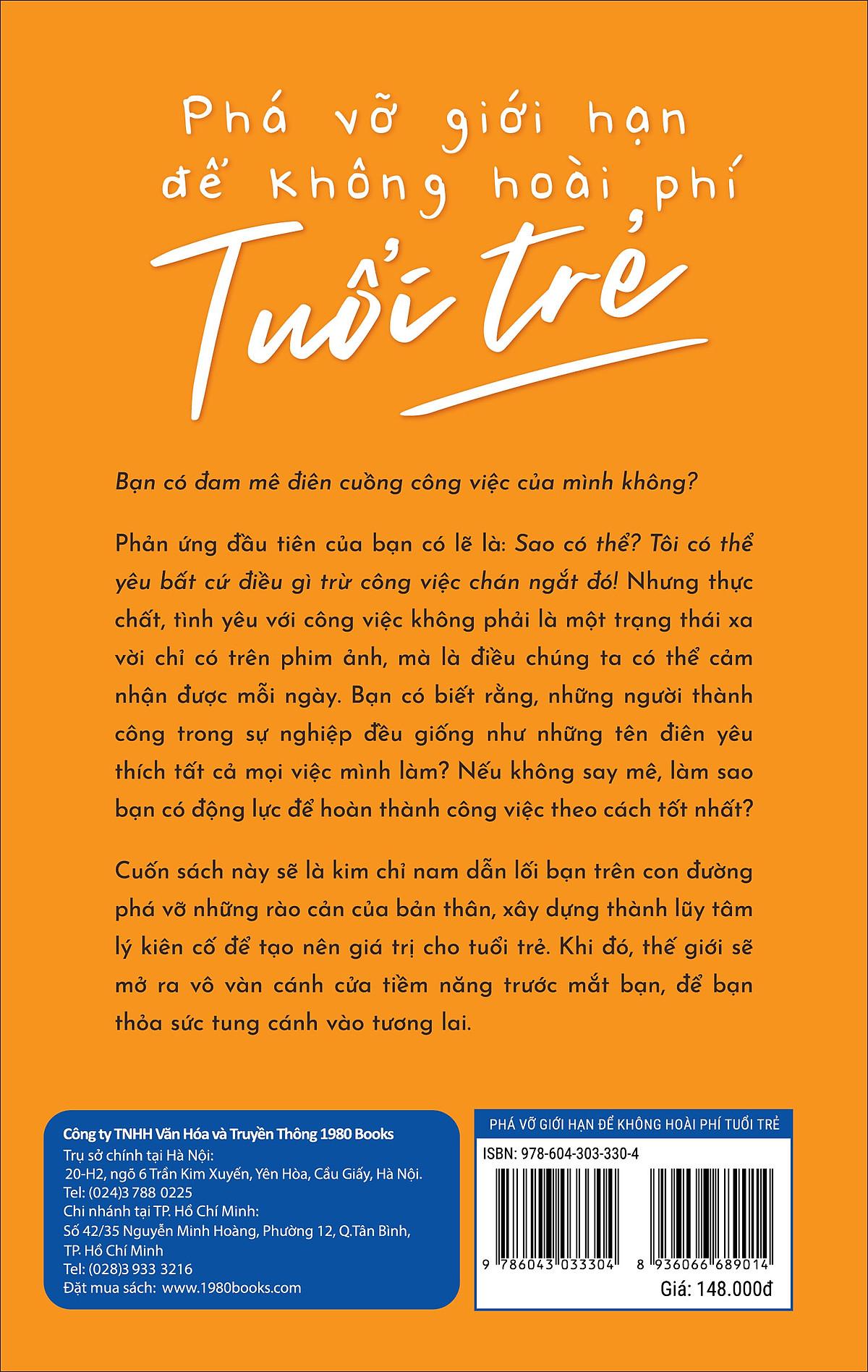 Mua tại Tiktok“Bạn có đam mê điên cuồng công việc của mình không?” Phản ứng đầu tiên của rất nhiều người có lẽ là: Sao có thể? Tôi có thể yêu bất cứ điều gì trừ công việc chán ngắt đó! Hoặc là “Yêu thích gì chứ, tôi làm việc chỉ vì tiền thôi”. Khoan đã nào, tình yêu với công việc không phải là một trạng thái xa vời chỉ có trên phim ảnh, đấy là điều chúng ta có thể cảm nhận được mỗi ngày. Bạn có biết rằng, những người đạt được thành công trong sự nghiệp đều giống như những tên điên yêu thích tất cả mọi việc mình làm? Nếu không say mê, làm sao bạn có động lực để hoàn thành công việc tốt nhất? Thông qua những câu chuyện có thật xen lẫn hư cấu, Phá vỡ giới hạn để không hoài phí tuổi trẻ đặt ra các khía cạnh của việc thiết lập tầm nhìn, mục tiêu vững chắc trong công việc. Đồng thời, cuốn sách còn là kim chỉ nam dẫn lối, là một sự chuẩn bị cho tâm lý và phương pháp hiệu quả cho những người trẻ trên con đường phá vỡ những rào cản của bản thân, xây dựng thành lũy tâm lý kiên cố để tạo nên giá trị cho tuổi trẻ. Khi đó, thế giới sẽ mở ra vô vàn cánh cửa tiềm năng trước mắt bạn, để bạn thỏa sức tung cánh vào tương lai. “Nếu như một người trẻ tuổi không thể phát hiện ra bất kỳ cơ hội nào trong công việc và cuộc sống để cho rằng bản thân có thể làm tốt hơn, vậy thì thất bại thảm hại với người đó chỉ là sớm hay muộn mà thôi.”- Augson Madden – Về tác giả: Trần Vĩnh Quân, nam, nhà văn trẻ mới nổi có tác phẩm bán chạy trên dangdang. Là một người trẻ tuổi, nhiệt huyết, Trần Vĩnh Quân đã thực hiện nhiều chương trình thảo luận về chủ đề phát triển và thành công cho giới trẻ hiện nay. Trần Vĩnh Quân cũng là tác giả của nhiều bài viết về năng lượng tích cực trên nhiều tờ báo nổi tiếng được độc giả hoan nghênh.