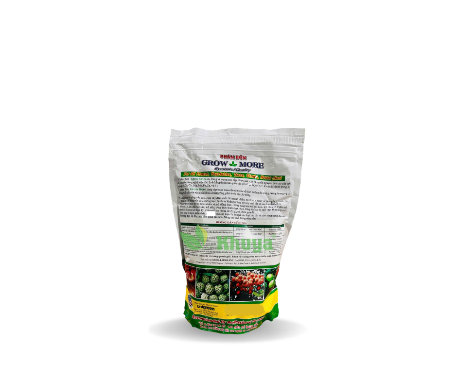 Phân bón Growmore đa, trung vi lượng cao cấp, được sản xuất từ nguồn nguyên liệu cao cấp với dây chuyền công nghệ hiện đại. Sự kết hợp hoàn hảo giữa các yếu tố đa lượng N,P,K và các yếu tố trung, vi lượng (S, Ca, Cu, Mg, Mn, Fe, Zn và B)