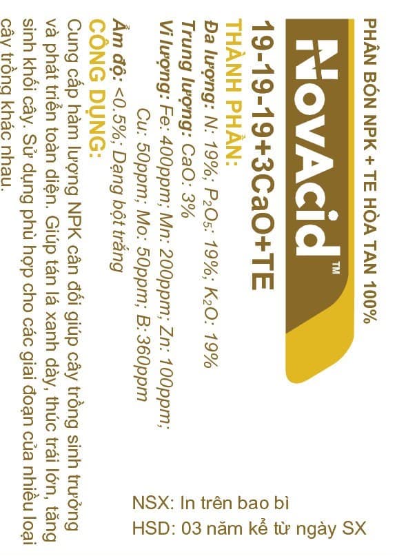 PHÂN BÓN HÒA TAN 100% TE + NPK NovacidTM Israel DÙNG CHO CÂY VÀ HOA (Phân Bón Hoà Tan 100% NovAcid 19-19-19+3CaO+Te, Phân Bón Lá NPK)