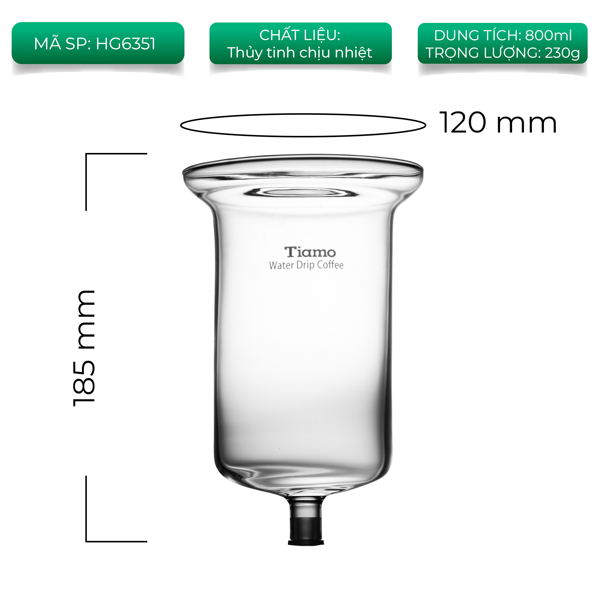 Tên sản phẩm: Phễu thuỷ tinh trên của cold drip HG2713 Tiamo Mã sản phẩm: HG6351 Thương hiệu: Tiamo Dung tích: 800ml