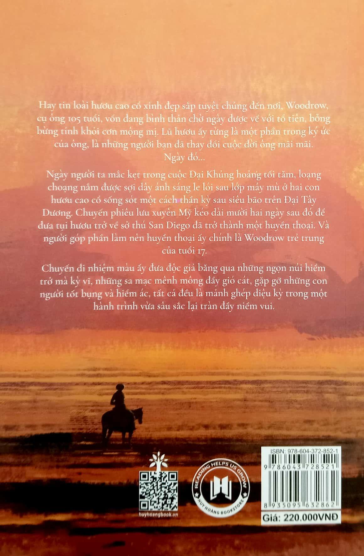Ngày người ta mắc kẹt trong cuộc Đại Khủng hoảng tối tăm, loạng choạng nắm được sợi dây ánh sáng le lói sau lớp mây mù ở hai con hươu cao cổ sống sót một cách thần kỳ sau siêu bão trên Đại Tây Dương. Chuyến phiêu lưu xuyên Mỹ kéo dài mười hai ngày sau đó để đưa tụi hươu trở về sở thú San Diego đã trở thành một huyền thoại. Và người góp phần làm nên huyền thoại ấy chính là Woodrow trẻ trung của tuổi 17.