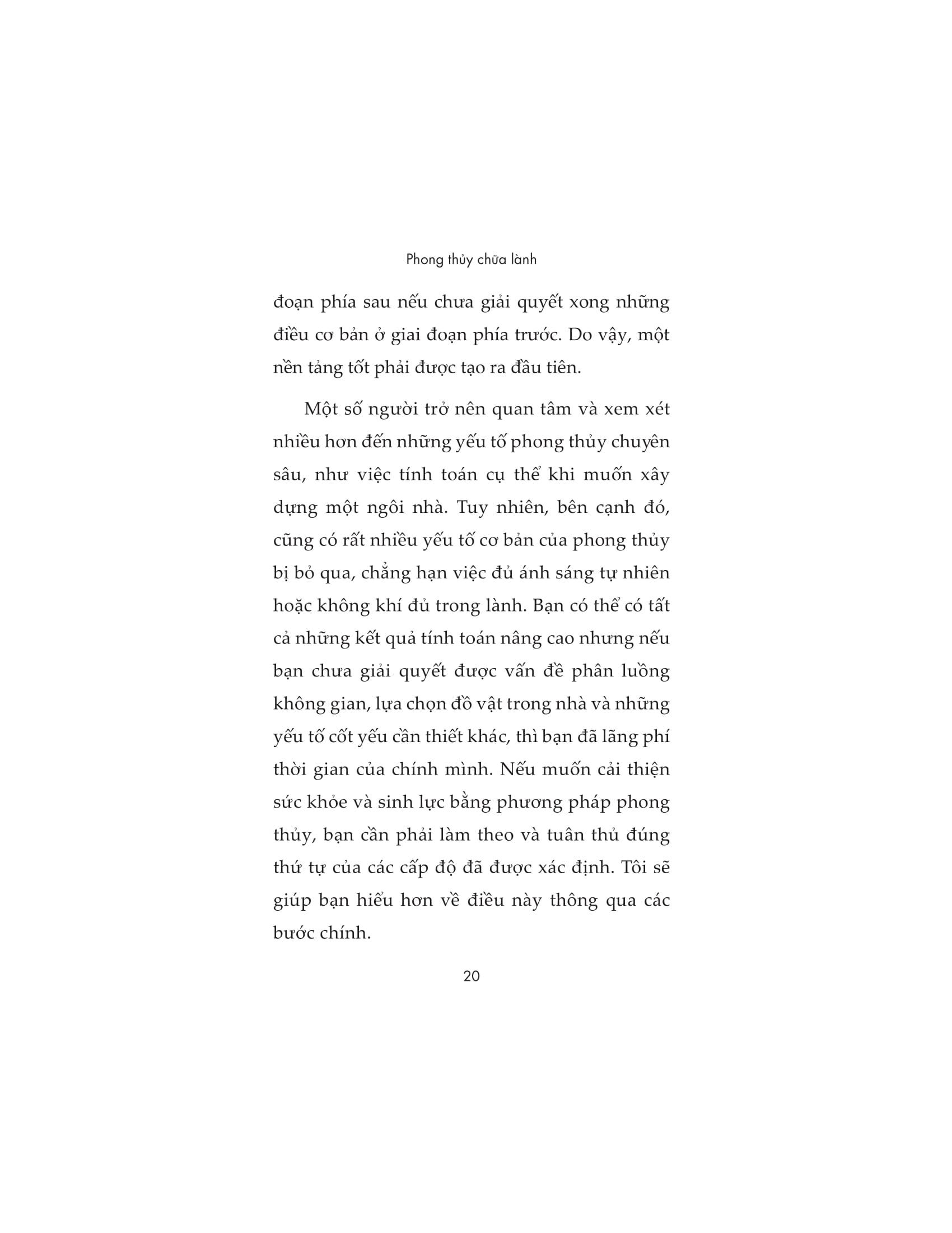 Thế giới rộng lớn và vô cùng phức tạp. Chúng ta gần như không thể kiểm soát được sự hỗn loạn liên tục của nó. Trong cuốn sách “Phong thủy chữa lành” sẽ cung cấp cho bạn cách áp dụng minh tuệ cổ xưa cho một ngôi nhà hiện đại. Xây dựng một ngôi nhà để che chở và chữa lành cho mỗi thành viên trong gia đình là bản chất của phong thủy.