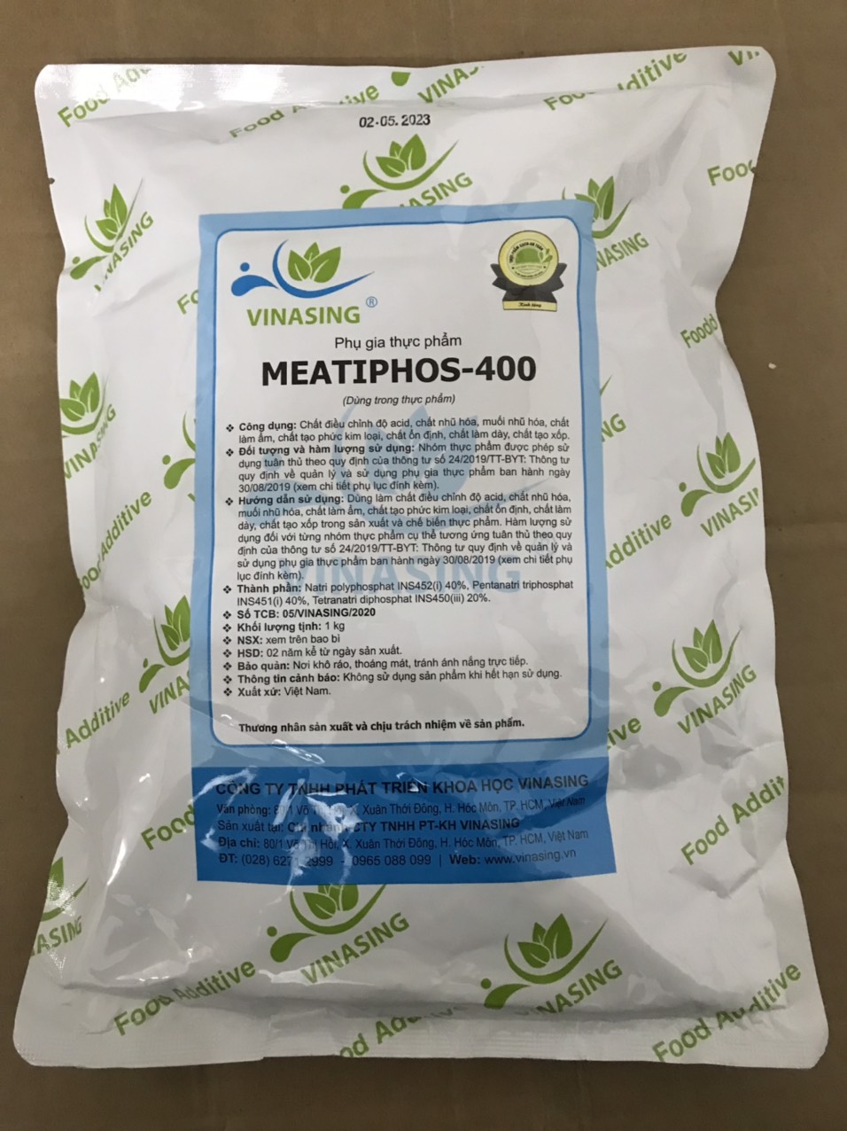 Meatiphos 400 - Phụ gia giòn dai - Công dụng: Dùng làm chất điều chỉnh độ acid, chất nhũ hóa, muối nhũ hóa, chất làm ẩm, chất tạo phức kim loại, chất ổn định, chất