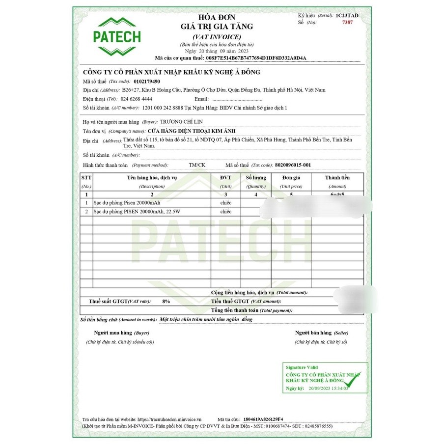Tem/thông tin xuất xứ của NHÀ PHÂN PHỐI CHÍNH THỨC DUY NHẤT – PATECH JSC,.