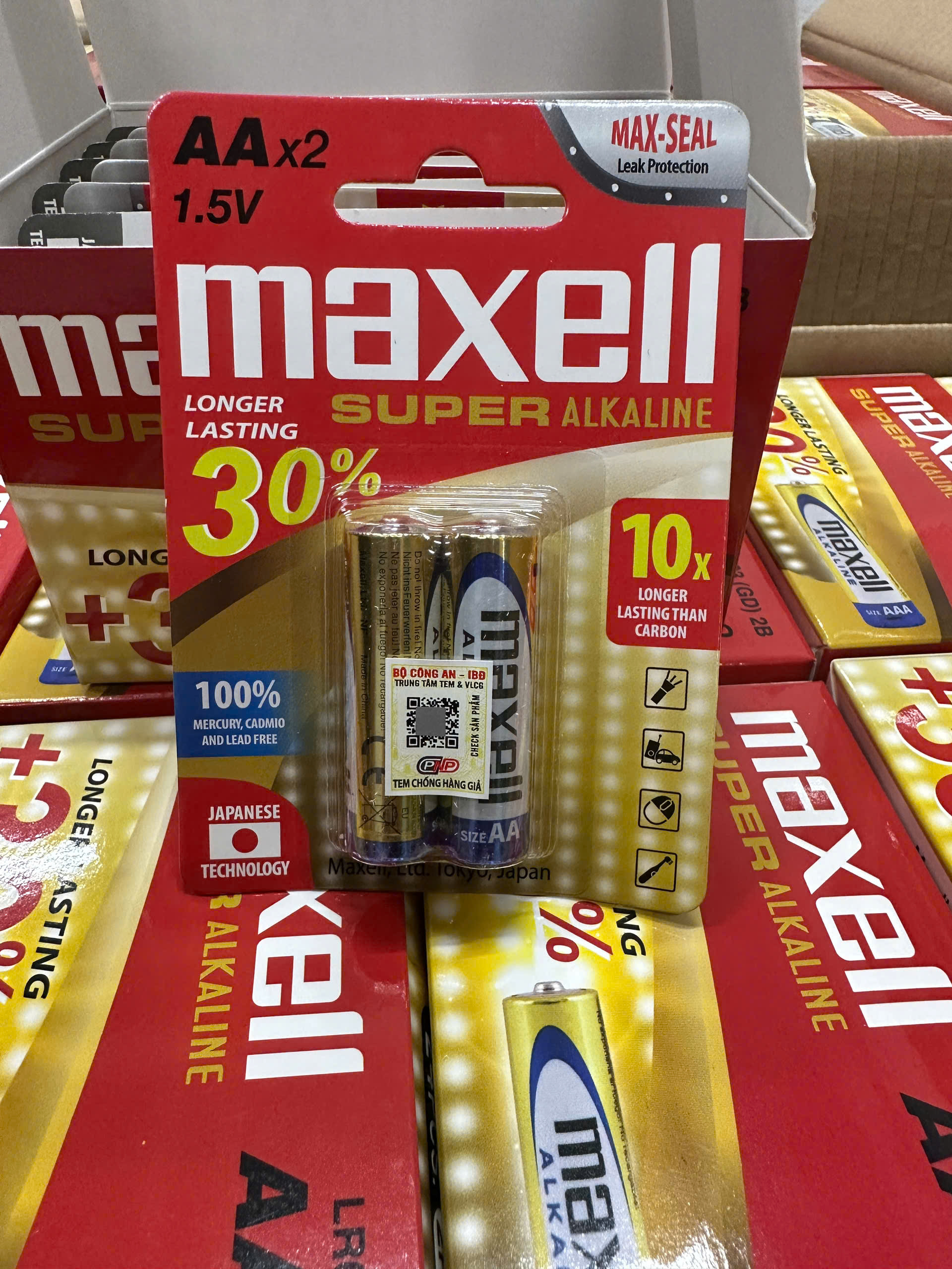 Thông số kỹ thuật – Pin Maxell Alkaline AA - Thương hiệu: Maxell (Nhật Bản) - Mã sản phẩm: LR6(GD)2B-Super - Điện áp: 1.5V - Dung lượng: khoảng 2000 mAh (theo công bố của hãng)