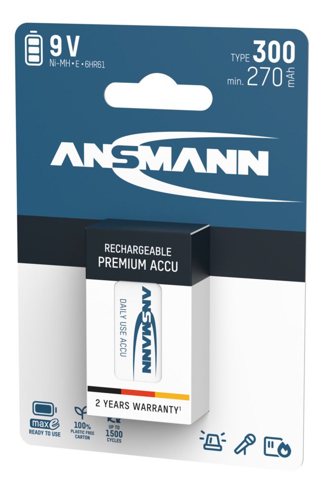 Nhằm tiết kiệm chi phí và thay thế cho những loại pin 9V (E-block) chỉ sử dụng một lần, ANSMANN AG (GERMANY) đã cho ra đời loại pin sạc Ansmann E-block 300mAh dung lượng lên