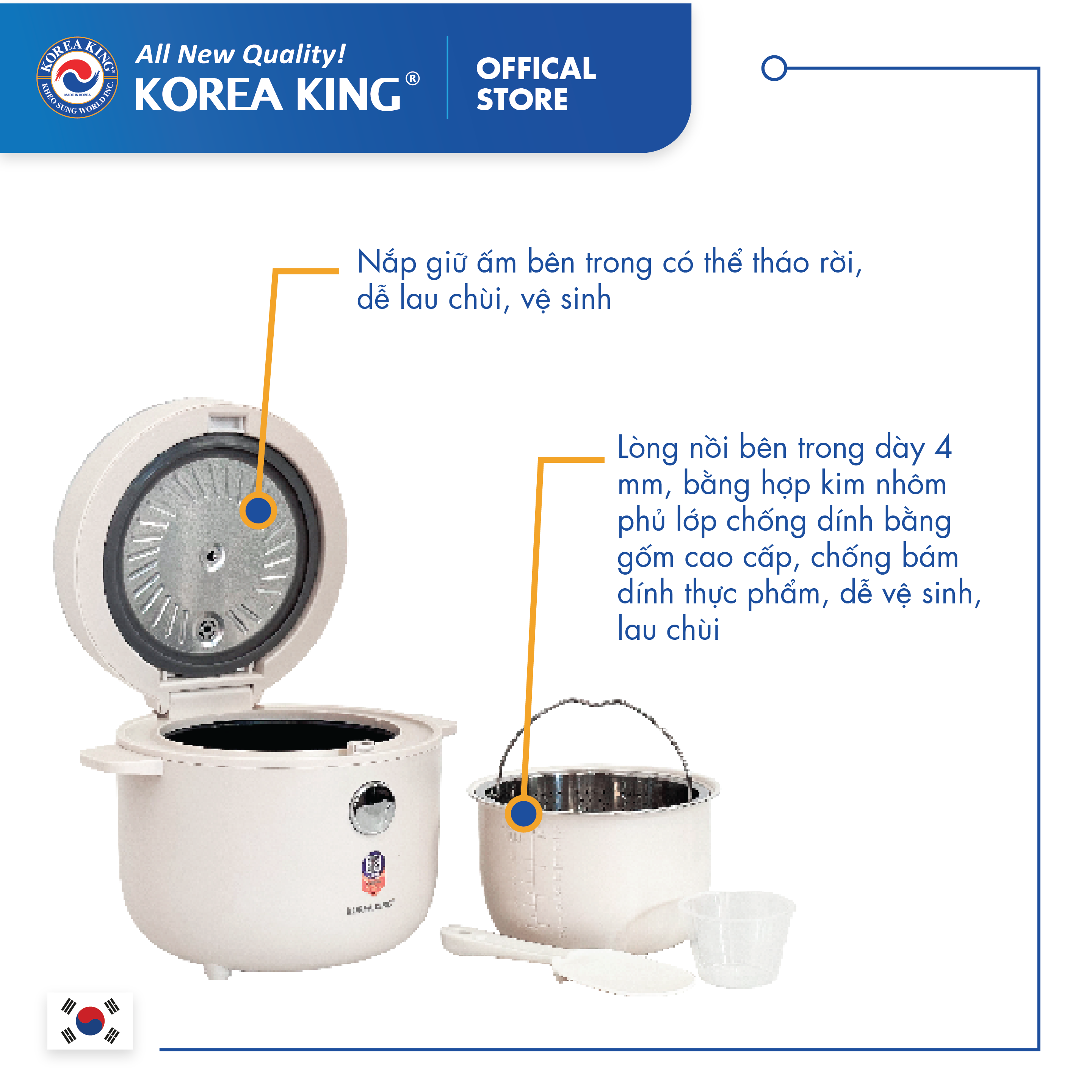 Đặc điểm sản phẩm Đáy nồi công nghệ mới: cơm ngon như nấu củi Dung tích 4 lít: phù hợp gia đình 2-8 người Hẹn giờ 12 tiếng: dễ lên lịch trình Vừa nấu vừa hấp: 1 nồi 2