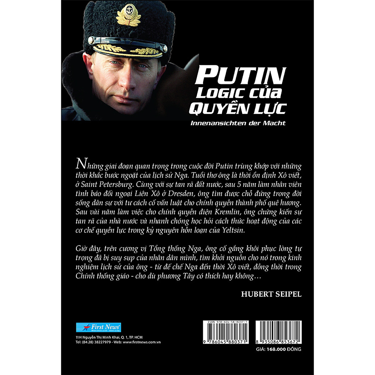 Từ một nhân viên tình báo đối ngoại làm thế nào để Putin trở thành Tổng thống Nga, người đàn ông quyền lực nhất thế giới? Và, con người thực của ông là thế nào? Hubert Seipel – một nhà báo, nhà làm phim lão làng của Đức, đã mang đến một câu trả lời đầy hấp dẫn trong cuốn sách Putin – Logic của quyền lực. Hơn một năm đầu tư nghiêm túc cho bản thảo, First News – Trí Việt mới có thể đưa đến bạn đọc quyển sách đặc biệt này.