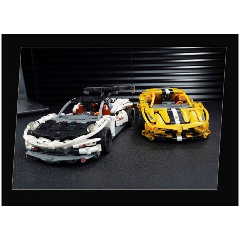 Mua tại TiktokQMAN - 91007 Bộ đồ chơi xếp hình mô hình xe Ô tô màu vàng đi bão, xe đua tốc độ (KT 26.7x13.8x8.7cm)
