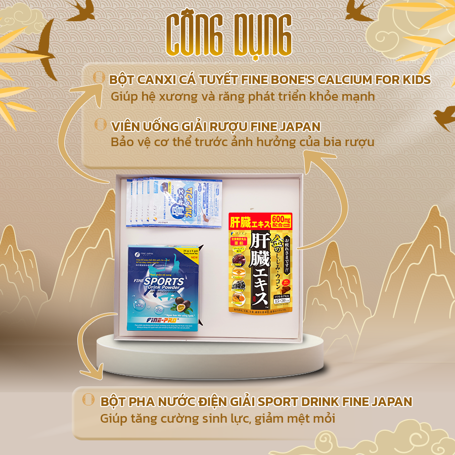 Combo FUJI TẾT AN YÊN - Viên uống giải rượu Fine Japan tăng cường chức năng gan 90 viên - Bột pha nước điện giải Sports Drink Powder Fine Japan bù nước, chất điện giải