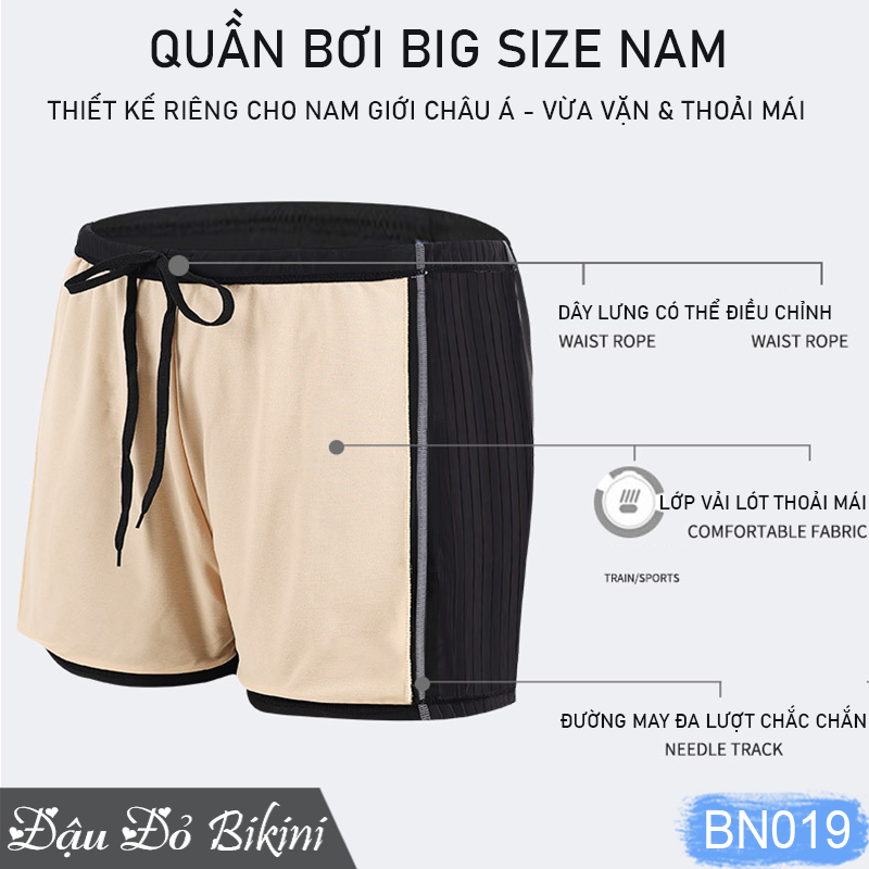 Quần bơi 2 lớp big size từ Đậu Đỏ Bikini (mã sản phẩm: BN070) không chỉ mang đến sự thoải mái mà còn giúp các bạn nam béo mập tự tin bơi lội khi ở