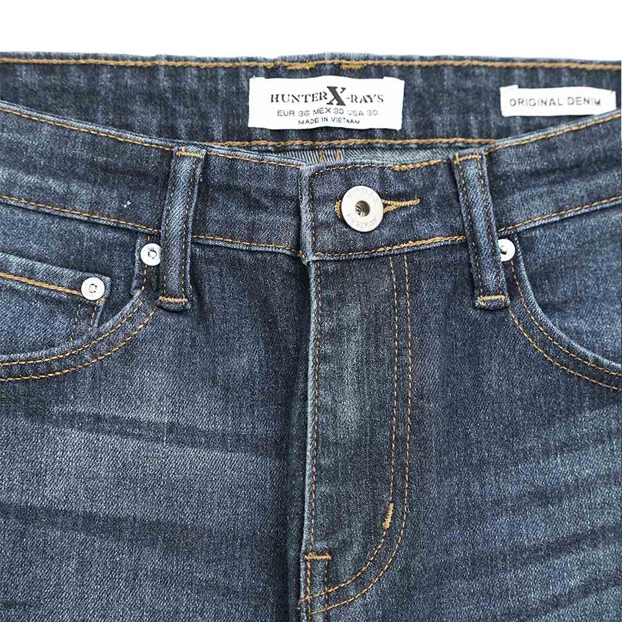 Quần Jeans Nam Cao Cấp HUNTER X-RAYS Form Slimfit Thun Màu Xanh Phủ Dơ NhẹD33 Đặc điểm nổi bật: Nút được đúc nguyên khối bằng đồng và nổi bật thương hiệu HUNTER X-RAYS đảm bảo