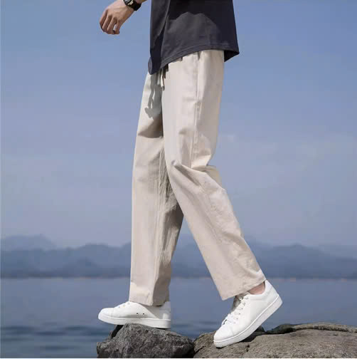 ✨Quần nam ống rộng chất linen, bản eo bo chun kèm dây rút dễ mặc, che khuyết điểm tốt, thời trang trẻ