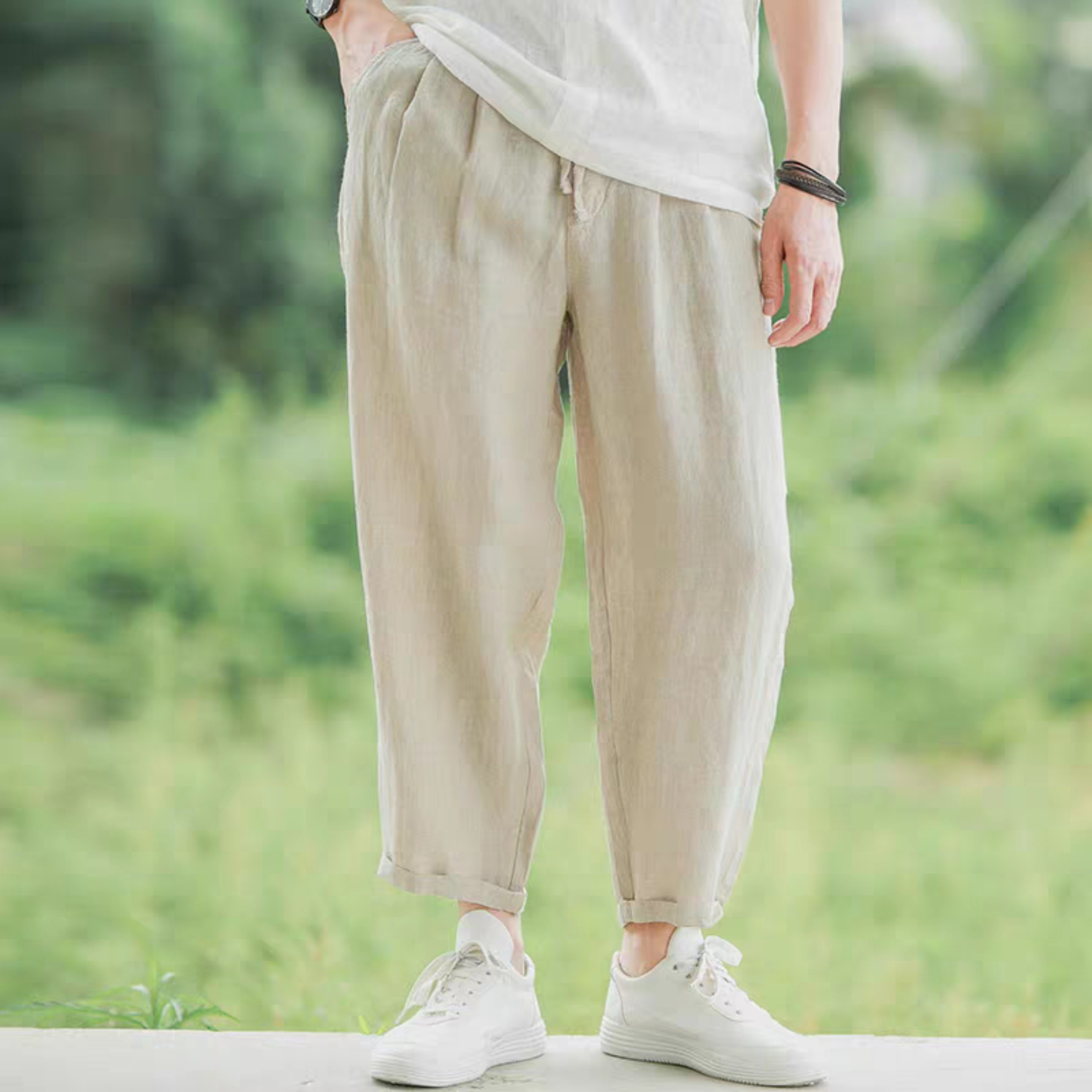 Quần Nam Chất Đũi Linen Dài Dáng Đứng Ống Rộng Vải Cao Cấp Mịn Đẹp Co Giãn Nhẹ Không Xù Lông Không Bai Gião Đây là sản phẩm quần linen CHÍNH HÃNG XƯỞNG 100% Cam