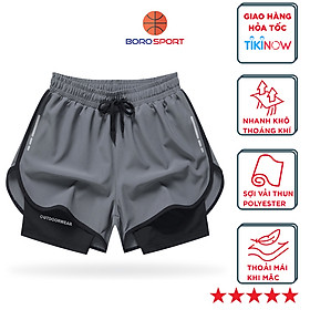 Quần short nam 2 lớp, có giãn tập gym chạy bộ, có túi đựng đt