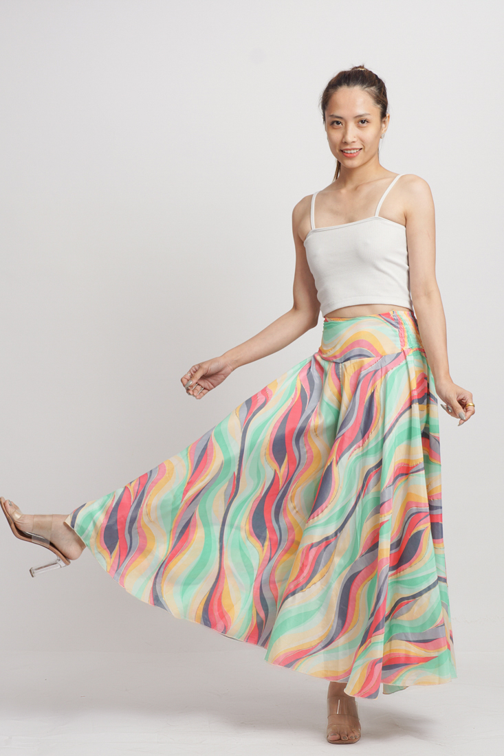 Quần Xòe Cotton Cao Cấp Luna Llena, chất lụa mềm mại, dáng váy xòe rũ. Lưng thun co giãn phần eo. Dài 100cm. Phù hợp đi biển, dạo phố, công sở, hoặc dự tiệc. Hướng