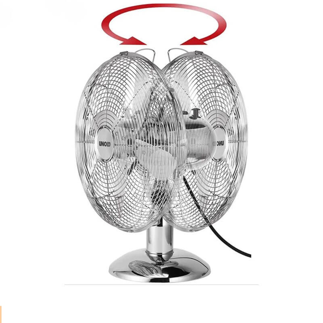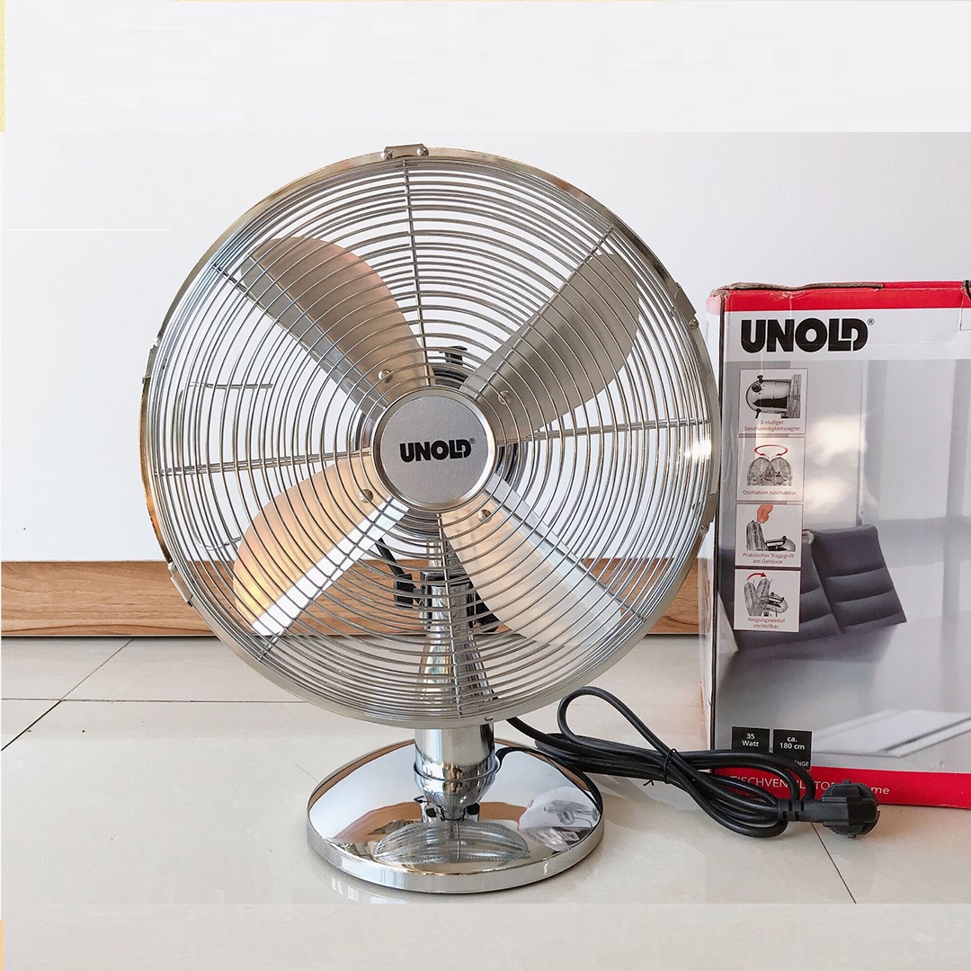 - Được đánh bóng cao và sáng bóng, Quạt bàn Unold có kiểu dáng retro hợp thời trang cho làn gió mới trên bàn làm việc của bạn, tại hội nghị hoặc trong nhà kính! Với điều khiển tốc độ ba giai đoạn, dao động có thể chuyển đổi và góc nghiêng có thể điều chỉnh, Climate Assistant sành điệu và nhỏ gọn có tất cả các tính năng hữu ích có thể mang theo bất cứ nơi nào bằng tay cầm thực tế trên vỏ và với một sợi cáp dài 175 cm, nơi cần có một luồng gió mới.