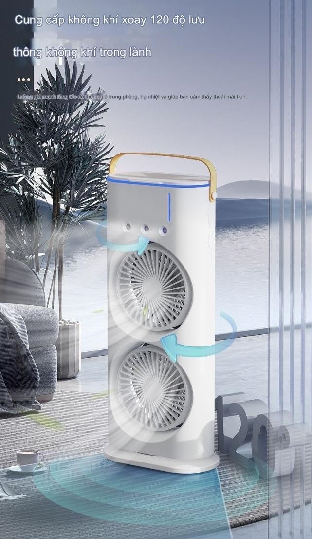 Quạt điều hoà hơi nước mini cool fan, quạt hơi nước làm mát phun sương để bàn 3 chế độ gió, dung tích bình lớn tích hợp đèn led, quạt phun sương mini để bàn