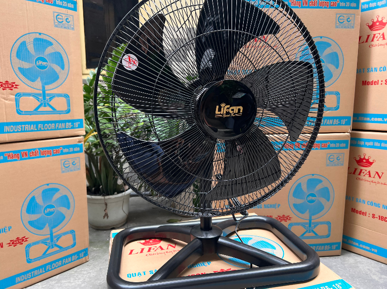 Quạt sàn Lifan S18CN – thiết kế để sàn, để bàn, để sạp bán hàng, … Cánh quạt với sải cánh lớn bằng nhựa tạo ra luồng gió mạnh mẽ. Quạt dễ dàng di chuyển và dễ dàng vệ sinh.