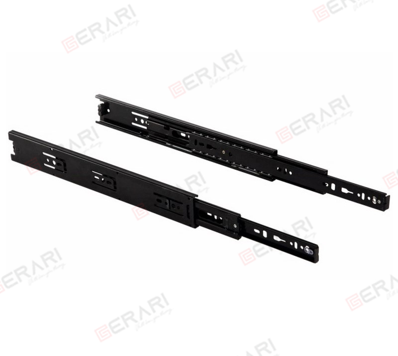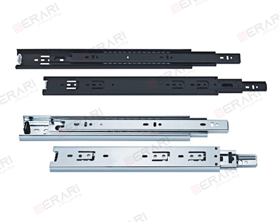 Ray bi 3 tầng giống như ray trượt đơn nhưng thiết kế của ray trượt bi khác hẳn so với ray trượt đơn , bởi đây là sản phẩm cải tiến, tích hợp rãnh vòng bi, kết hợp ba thanh thép, giúp tăng khả năng chịu trọng tải lớn của ngăn tủ mà không ảnh hưởng đến chuyển động, không gây ra tiếng ồn.