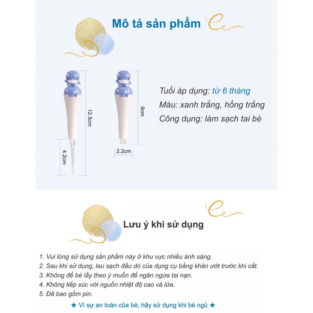 Mua tại TiktokTrang bị đèn led với ánh sáng dịu nhẹ, giúp mẹ nhìn rõ bụi bẩn trong tai, bảo vệ ống tai khỏi tổn thương khi không nhìn rõ.