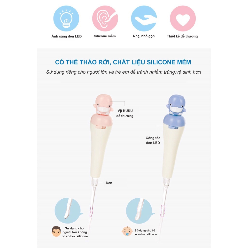 Dụng cụ lấy ráy tai cho bé có đèn led KuKu KU3036 cho trẻ từ 6 tháng