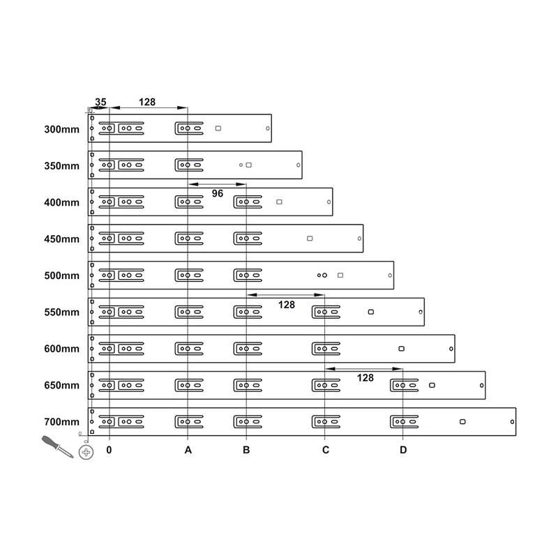 ✨Ray trượt, ray bi 3 tầng giảm chấn Hafele 350mm - 494.02.062