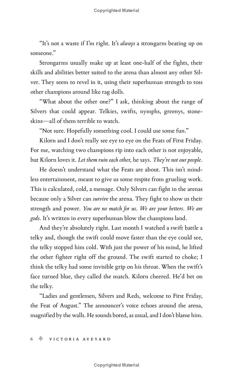 That is, until she finds herself working in the Silver Palace. Here, surrounded by the people she hates the most, Mare discovers that, despite her red blood, she possesses a deadly power of her own. One that threatens to destroy the balance of power.