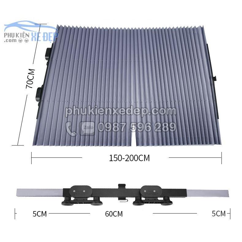 Rèm che nắng kính lái ô tô loại kéo, để bên trong kính ô tô Chất liệu rèm: Giấy nhôm cách nhiệt và Polime chống nóng. Khung được làm từ hợp kim nhôm cao cấp