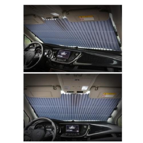 Rèm che nắng kính lái ô tô loại kéo, để bên trong kính ô tô Chất liệu rèm: Giấy nhôm cách nhiệt và Polime chống nóng. Khung được làm từ hợp kim nhôm cao cấp