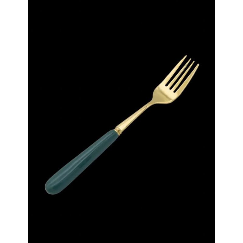 Thìa dĩa mạ vàng cán sứ màu xanh nĩa ăn trái cây / muỗng cà phê dài 15cm