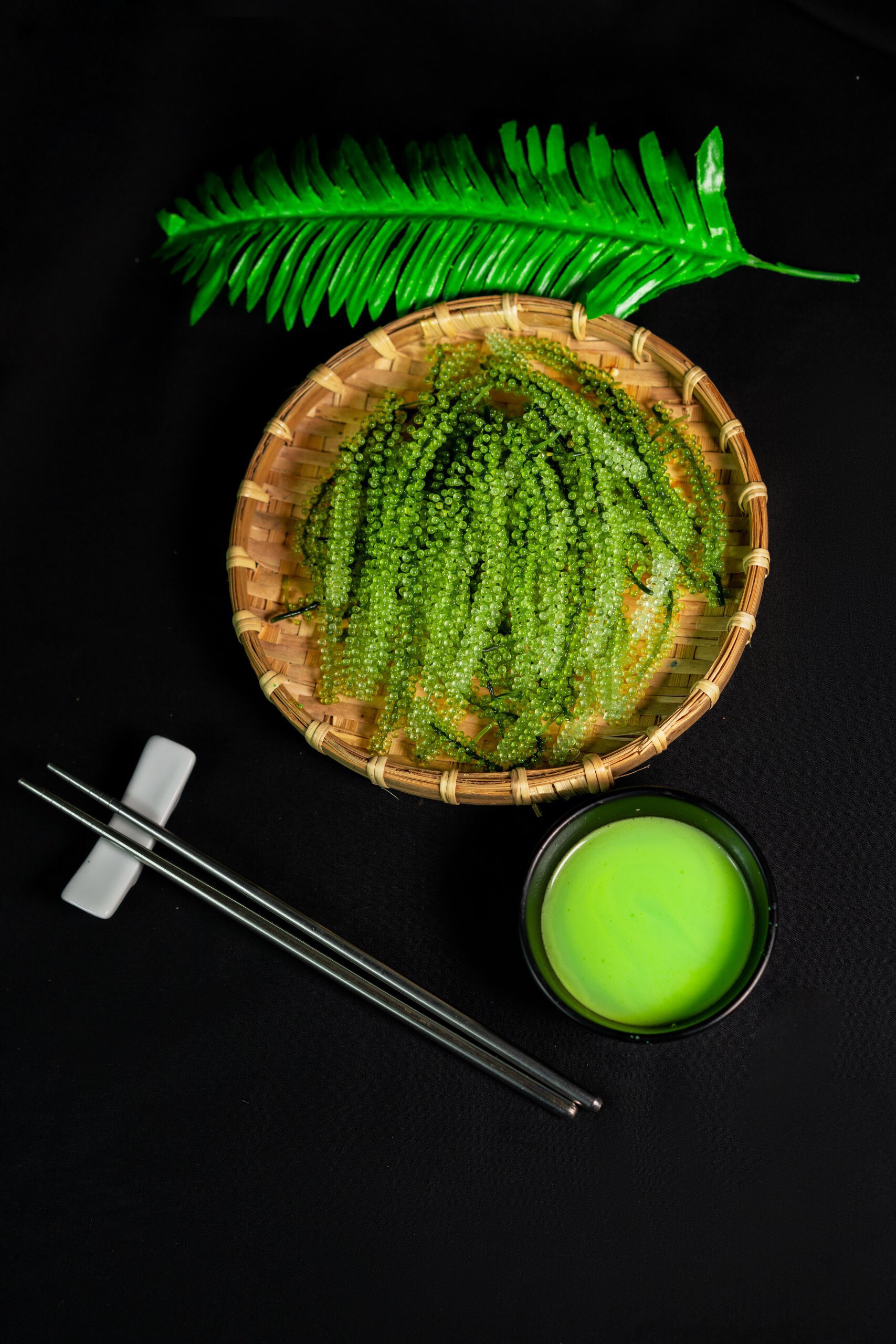 - Bước 3: Dùng ngay trong vòng 20 phút vì rong nho tươi sẽ xẹp lại “Dùng làm món ăn khai vị với các loại nước sốt khác nhau (Sốt mè rang, mù tạt, muối tiêu chanh, tương ớt, tương cà…). Hoặc dùng thay thế rau xanh và hải sản hằng ngày (Ăn với cơm trắng, rau sống, làm salad, sushi, sinh tố…). Hoặc đắp mặt nạ làm đẹp” Lưu Ý: Không chiên, xào, nấu chín hoặc đổ nước sốt trực tiếp vào rong nho tươi vì sẽ làm cho chúng xẹp lại