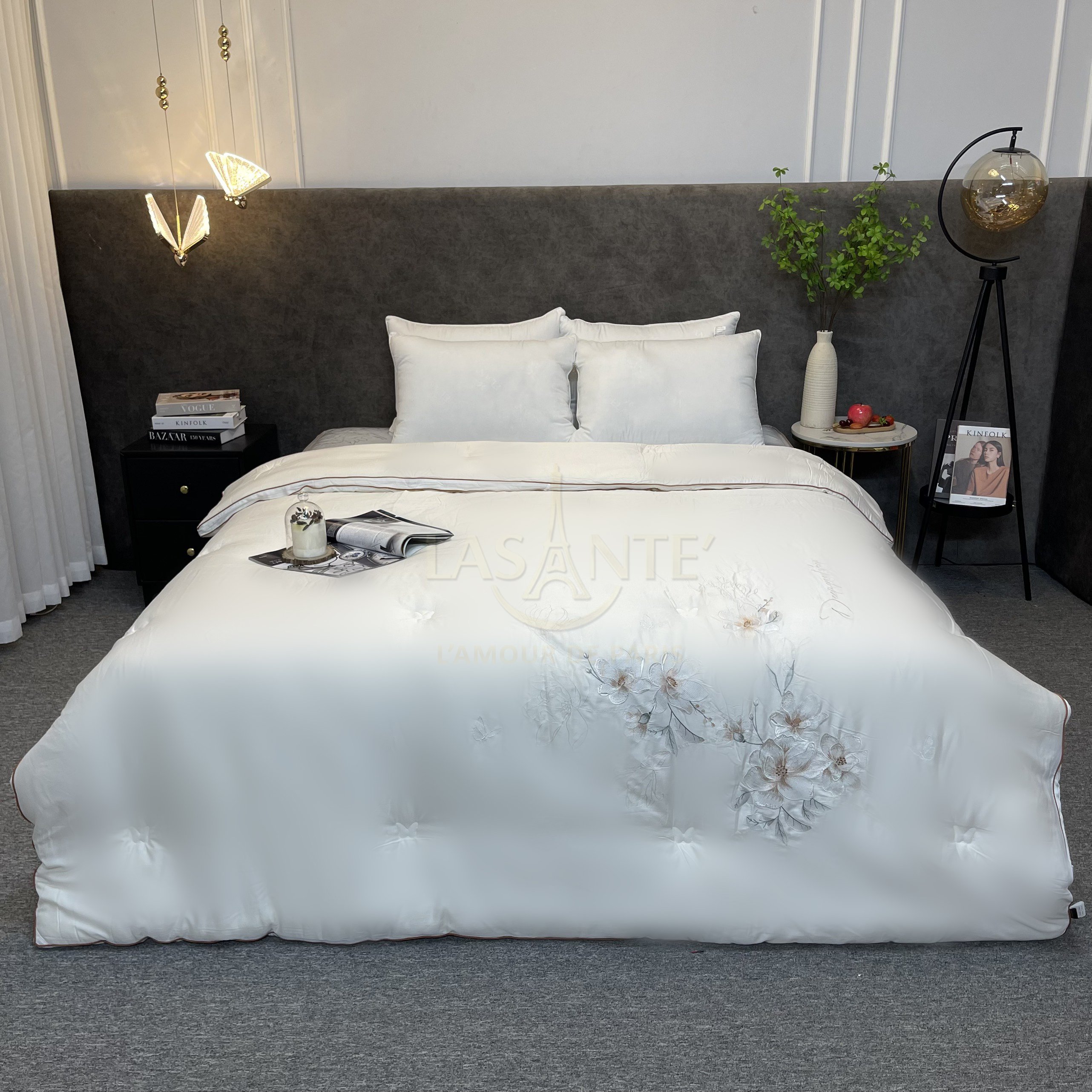 Mua tại Tiktoḳ̂ ̆ đ̂ ̂ ̉ ' 1 chiếc ruột chăn nhìn là thấy mê: lấp lánh, sang chảnh Size: 200*230 cm Cân nặng: 4kg Có thể làm ruột chăn hoặc đắp thẳng trực tiếp Ruột được làm từ bông đậu nành với khả năng kháng khuẩn cao, thân thiện với môi trường, độ đàn hồi tốt, giữ ấm nhanh Chất liệu vải tencel cao cấp: mềm mại, óng ả, mát mẻ Thiết kế họa tiết thêu tinh tế, đẳng cấp Ưu điểm của ruột chăn Lasante