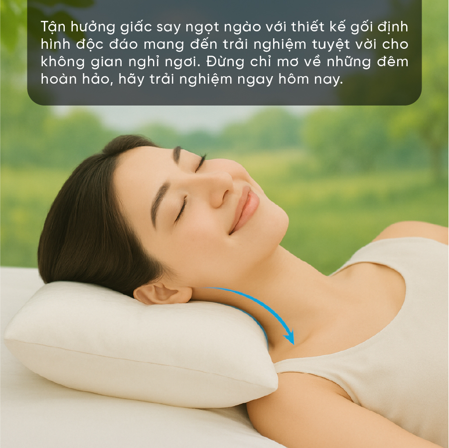 Ưu điểm nổi bật: • 93% cao su thiên nhiên công nghệ Nhật – không mùi khó chịu. • Lỗ thoáng khí chống nóng, nằm mát mùa hè. • Không xẹp, không biến dạng –