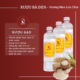 Rượu Gạo Bà Đen chai pet 500ml với nguyên liệu chính là gạo chọn lọc đạt chất lượng được nấu chín kết hợp với men vi sinh .