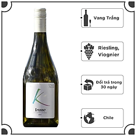 Rượu vang Korta K Irune Chai vang này pha trộn nho Riesling và Viognier tạo nên hương vị cân bằng, ngọt nhẹ, dễ thưởng thức. Hương vị rượu có sự tinh tế từ sự kết