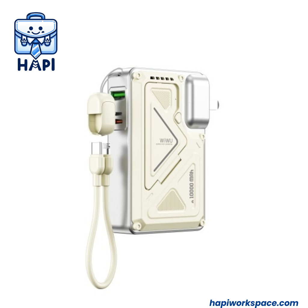 ✨Sạc Dự Phòng hàng chính hãng WiWU Knight Series 10.000mAh 35W Wi-P057 tích hợp cáp sạc, sạc tường AC, sạc không dây, kiêm giá đỡ điện thoại
