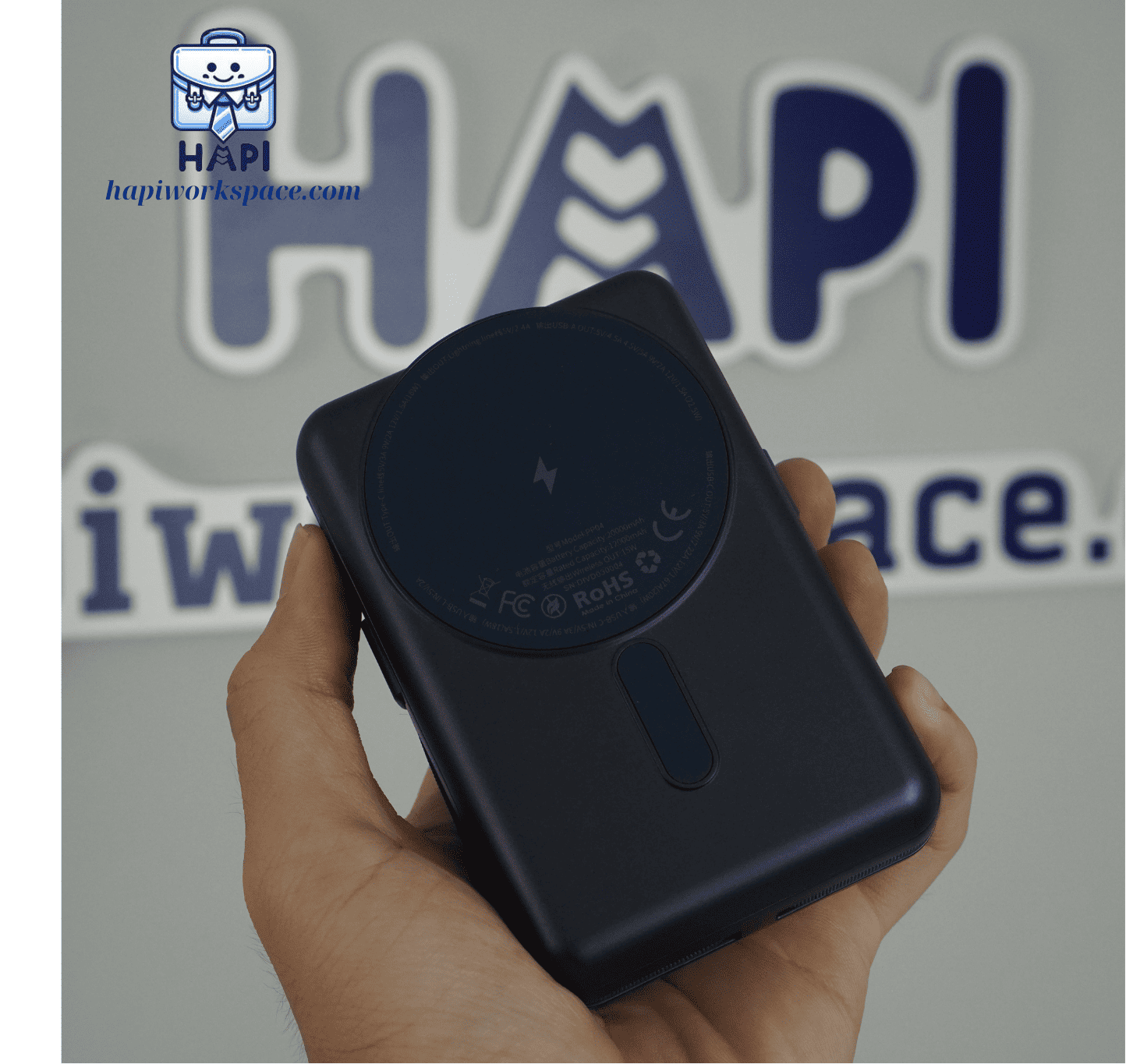 - Thiết kế nhỏ gọn kích thước 97 x 63 x 16 mm, trọng lượng 150g. - Sạc không dây từ tính tương thích với các thiết bị hỗ trợ sạc từ tính. - Dung