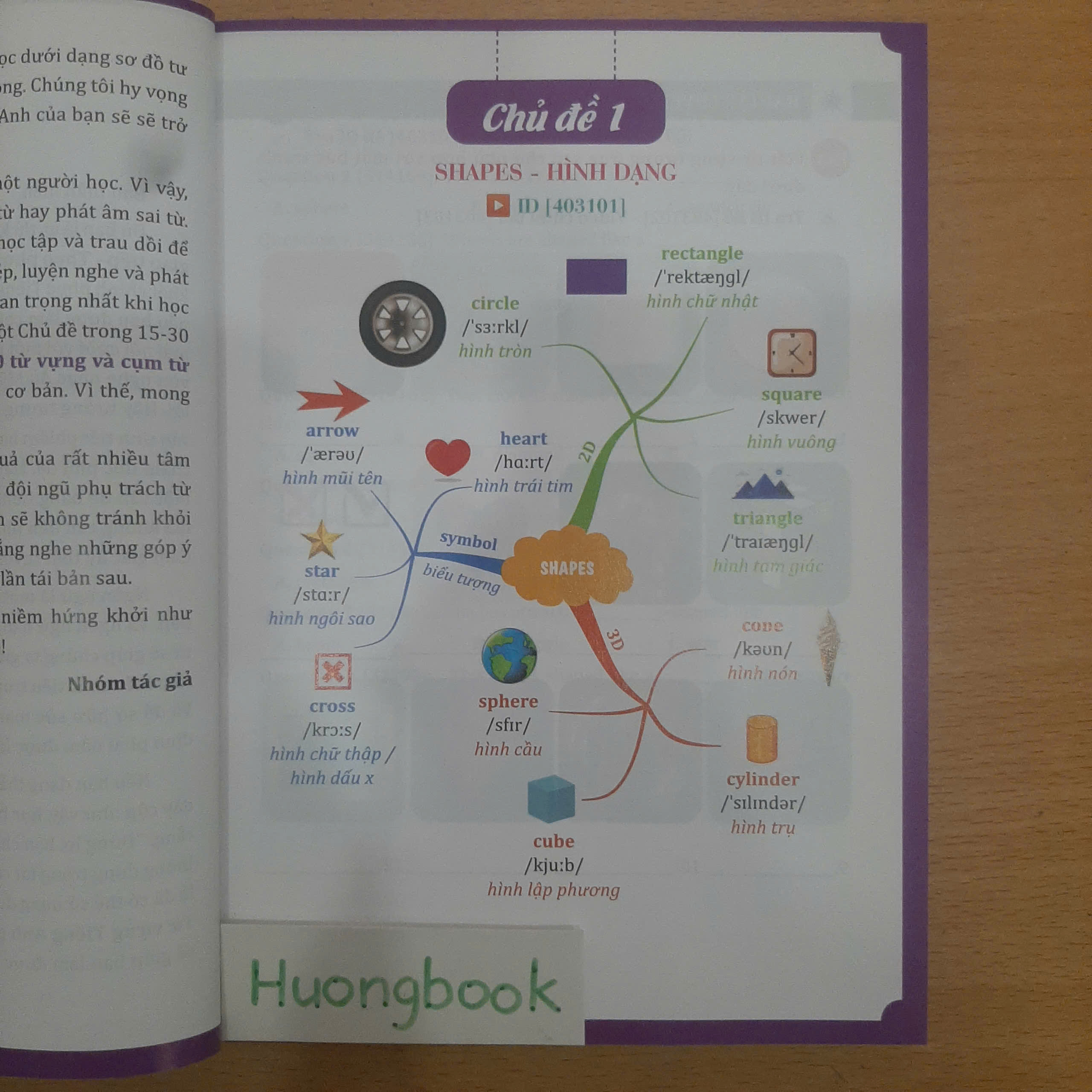 Cuốn sách 1000 từ vựng tiếng anh giao tiếp - Theo phương pháp sơ đồ tư duy đúng như tên gọi của nó cuốn sách gồm 99 chủ đề, 1000 từ vựng và cụm tiếng anh thông dụng trong tất cả các chủ đề thường gặp từ cuộc sống đến công việc , các từ vựng trong cuốn sách này được thể hiện một cách khoa học dưới dạng sơ đồ tư duy với nhiều hình ảnh minh hoạ có màu sắc sinh động.
