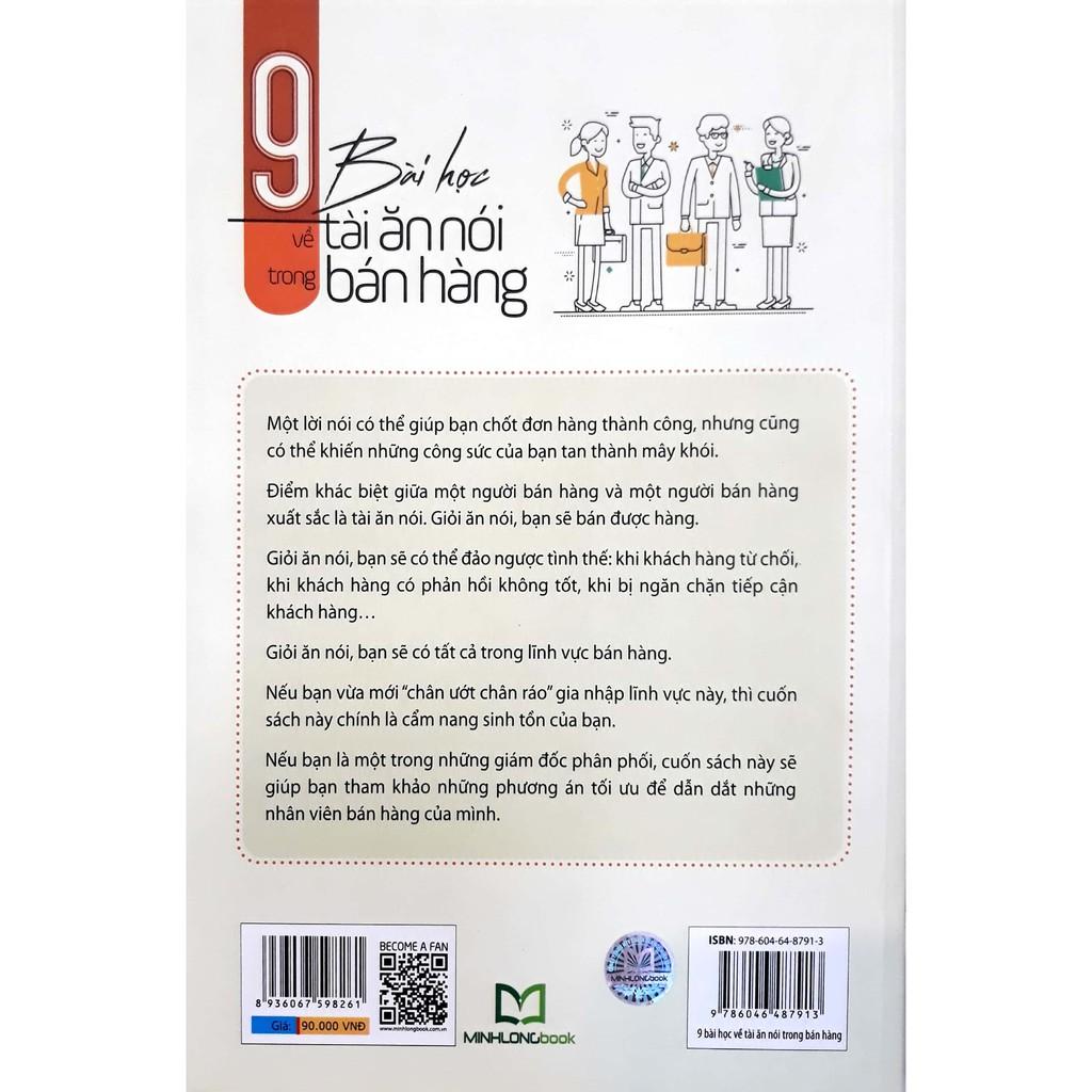 Để giành được lợi thế trong giới bán hàng thì phải giỏi ăn nói, thế nhưng nếu bạn không giỏi ăn nói thì phải làm sao? Cuốn cẩm nang “9 bài học về tài ăn nói trong bán hàng” gói gọn tất tần tật những kỹ năng mà bạn có thể học được ‘ngay lập tức’ nhờ có những phân tích chi tiết; tình huống gần gũi với thực tế bán hàng thông qua 47 kỹ năng được chia thành 9 bài học vô cùng dễ hiểu.