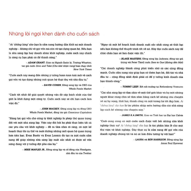 Mua tại TiktokAi “Chống Lưng” Cho Bạn Khởi sự một doanh nghiệp chưa bao giờ là việc dễ dàng. Khi đã có một ý tưởng, một lộ trình để phát triển kinh doanh, thứ bạn buộc phải có, không gì khác, chính là vốn. Cuốn sách này sẽ giải mã cho bạn một trong những phần đáng sợ nhất khi khởi nghiệp: gọi vốn. Toàn bộ cuốn sách sẽ xoay quanh việc trả lời câu hỏi duy nhất: Để huy động vốn, bạn thật sự cần những gì? Cuốn sách gồm 2 phần: Phần 1: Xây dựng bài thuyết trình kêu gọi đầu tư Phần 2: Chống lưng Tác giả:Evan Baehr, Evan Loomis Ngày xuất bản :01-2018 Kích thước :24 x 19 cm Nhà xuất bản :Nhà Xuất Bản Thế Giới Dịch Giả :Lê Thiện Trí Loại bìa :Bìa mềm Số trang :240