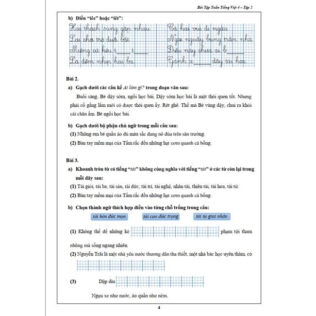 Bài Tập Tuần dành cho học sinh lớp 4 - Toán và Tiếng Việt - học kì 2 (2 quyển)