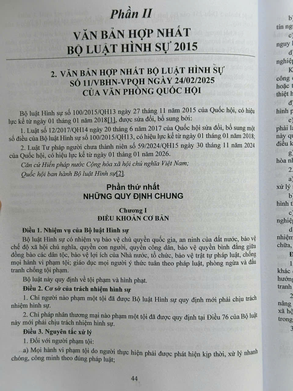 Phần thứ hai. Văn bản hợp nhất bộ luật hình sự 2015